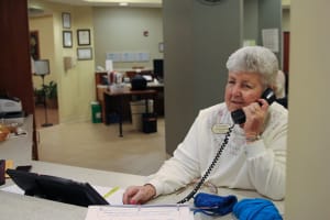Jelemia Sanders, a 20-plus year volunteer at Hospice Care Plus, answers phones at the Compassionate Care Center.