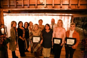 Staff award winners. From left: Susan Field, Sarah Lilly, Kathy Bryant, Donna Tapley, Melanie Hacker, Heather Randall, and Denise McKinney. Not pictured: Regina King, Diana Bond