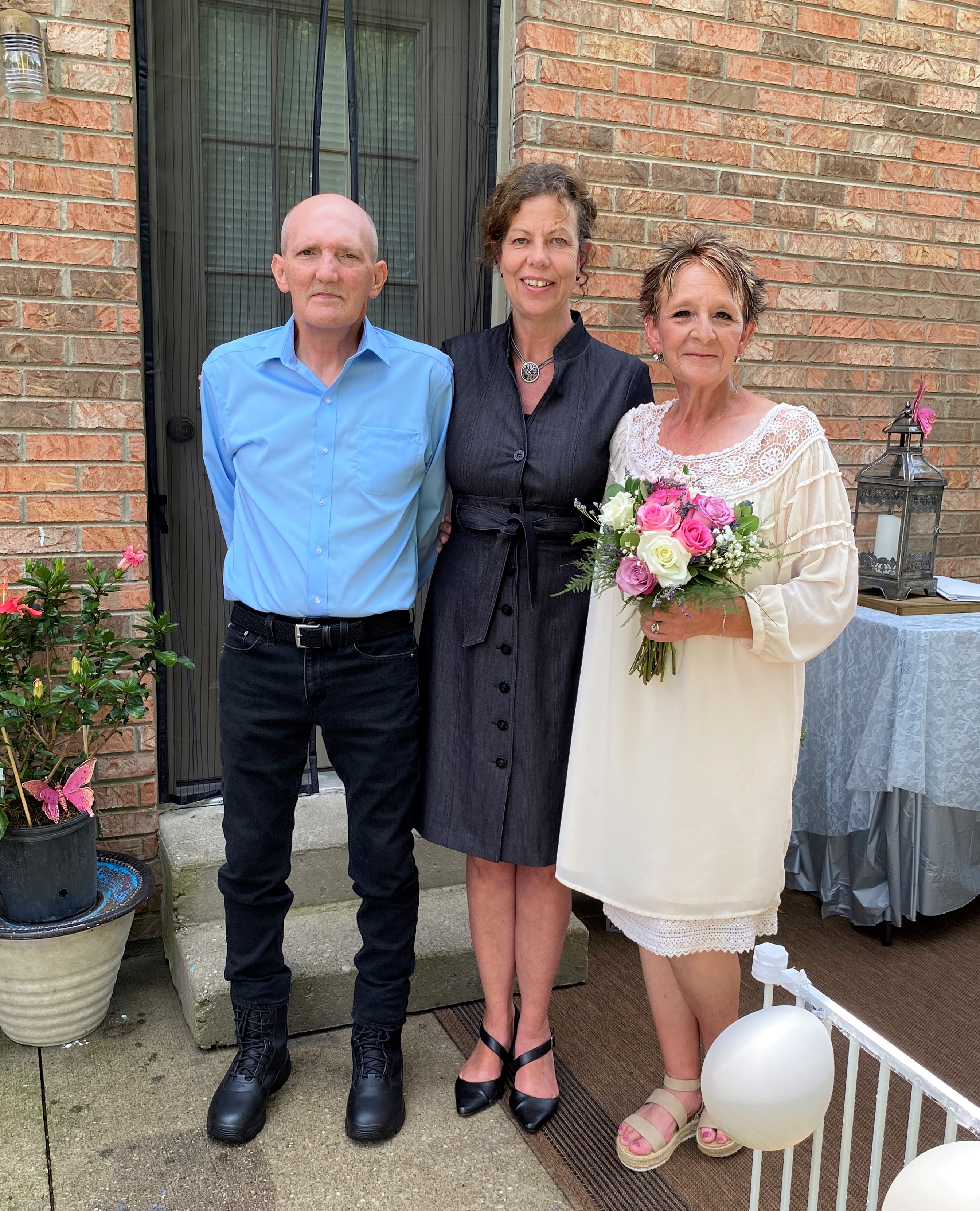 Foley’s Florist in Berea provided a beautiful bouquet at a steep discount, only charging enough to cover their cost. A staff member volunteered to take pictures. Another offered to make a cake. Courtney Saylor, his home hospice nurse, worked closely with Randy to ensure his symptoms were controlled and that he was rested, so he would have the strength to stand during the ceremony.