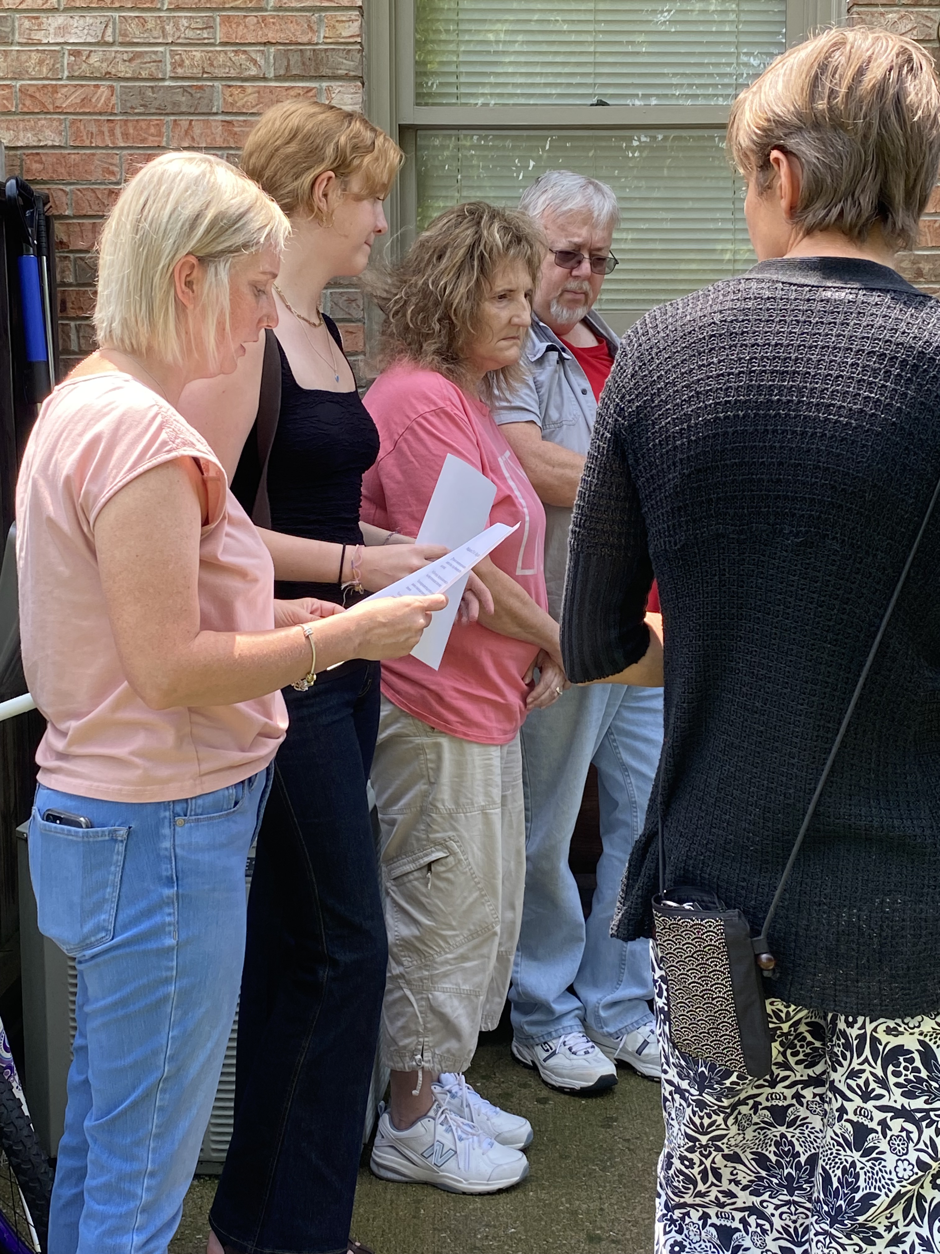 Everyone took their place. Sally passed out selected scriptures and, at the proper moment, nodded to each reader in turn.