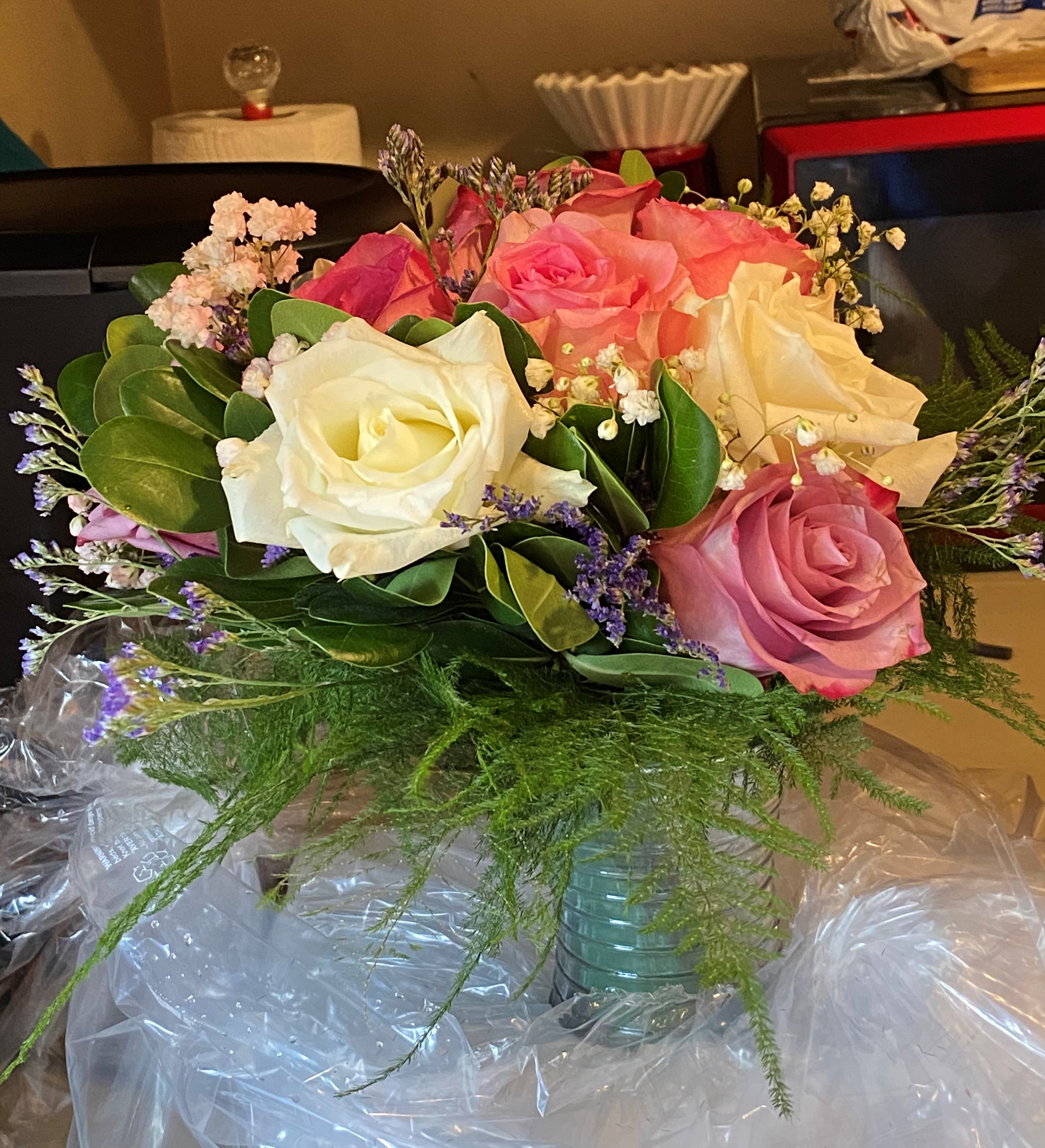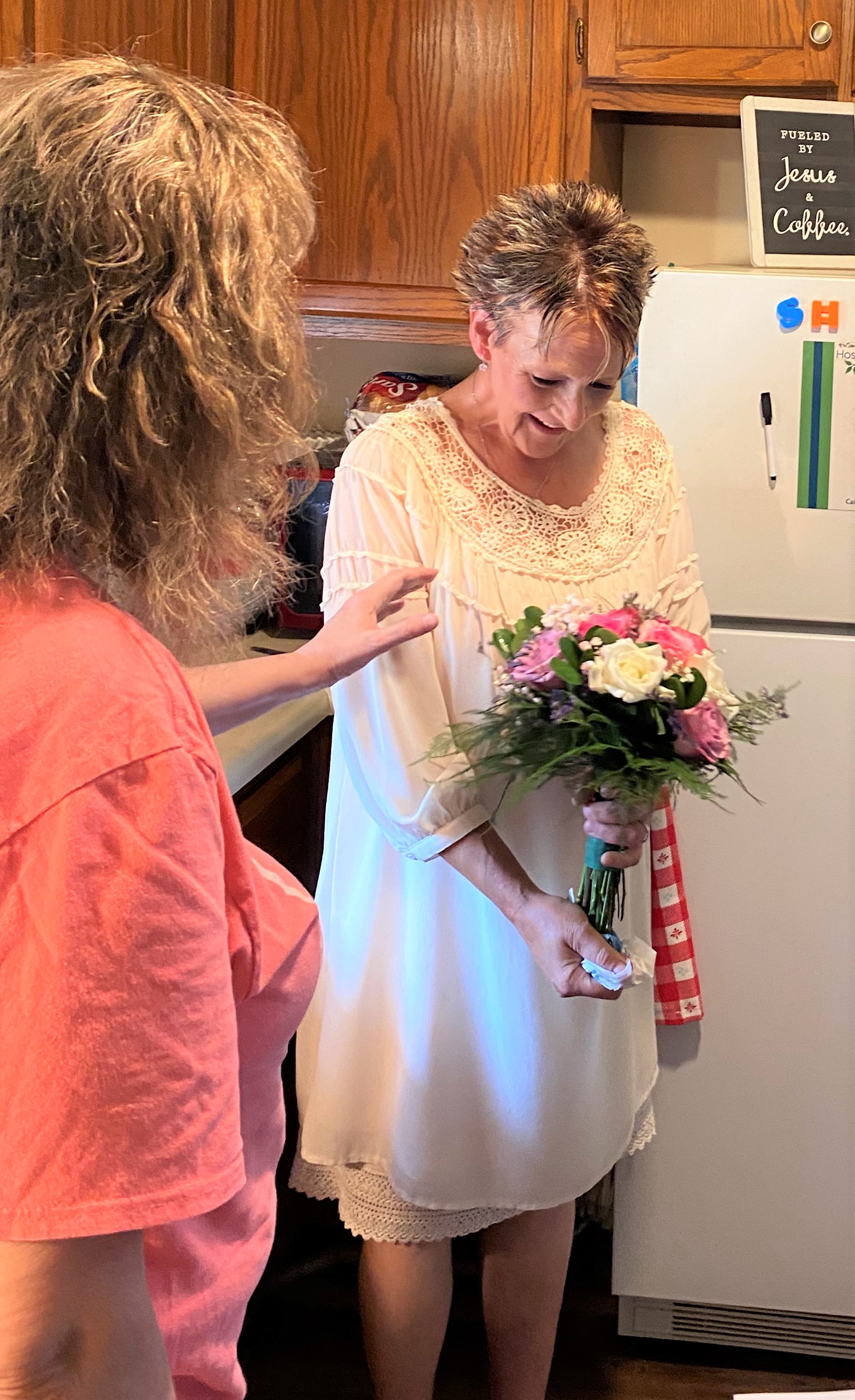 Plenty of pictures were taken: some with family and friends, and some just with Randy and Sophie. Sophie looked lovely in the dress she bought for this occasion, and the pink and cream bouquet matched perfectly.