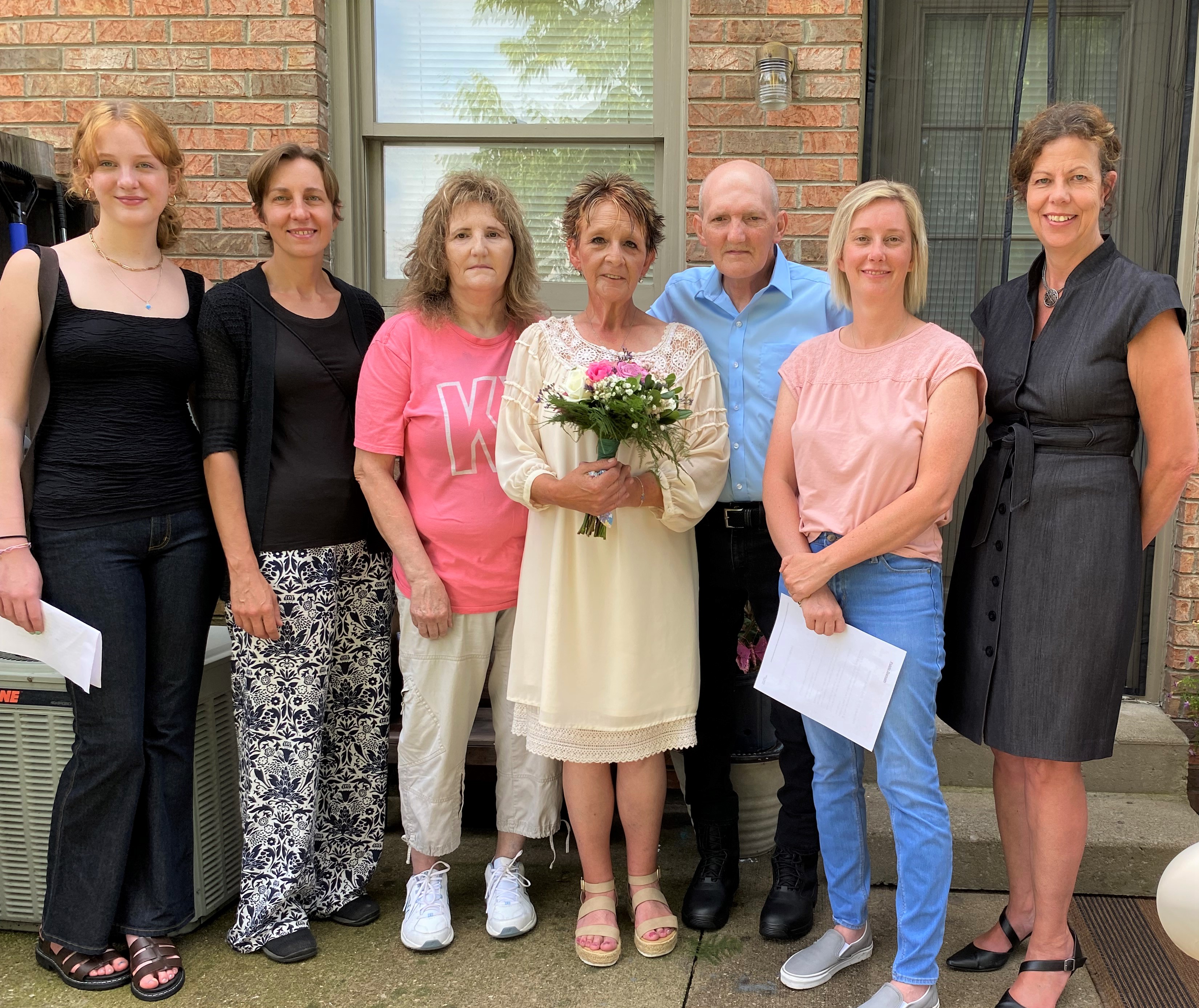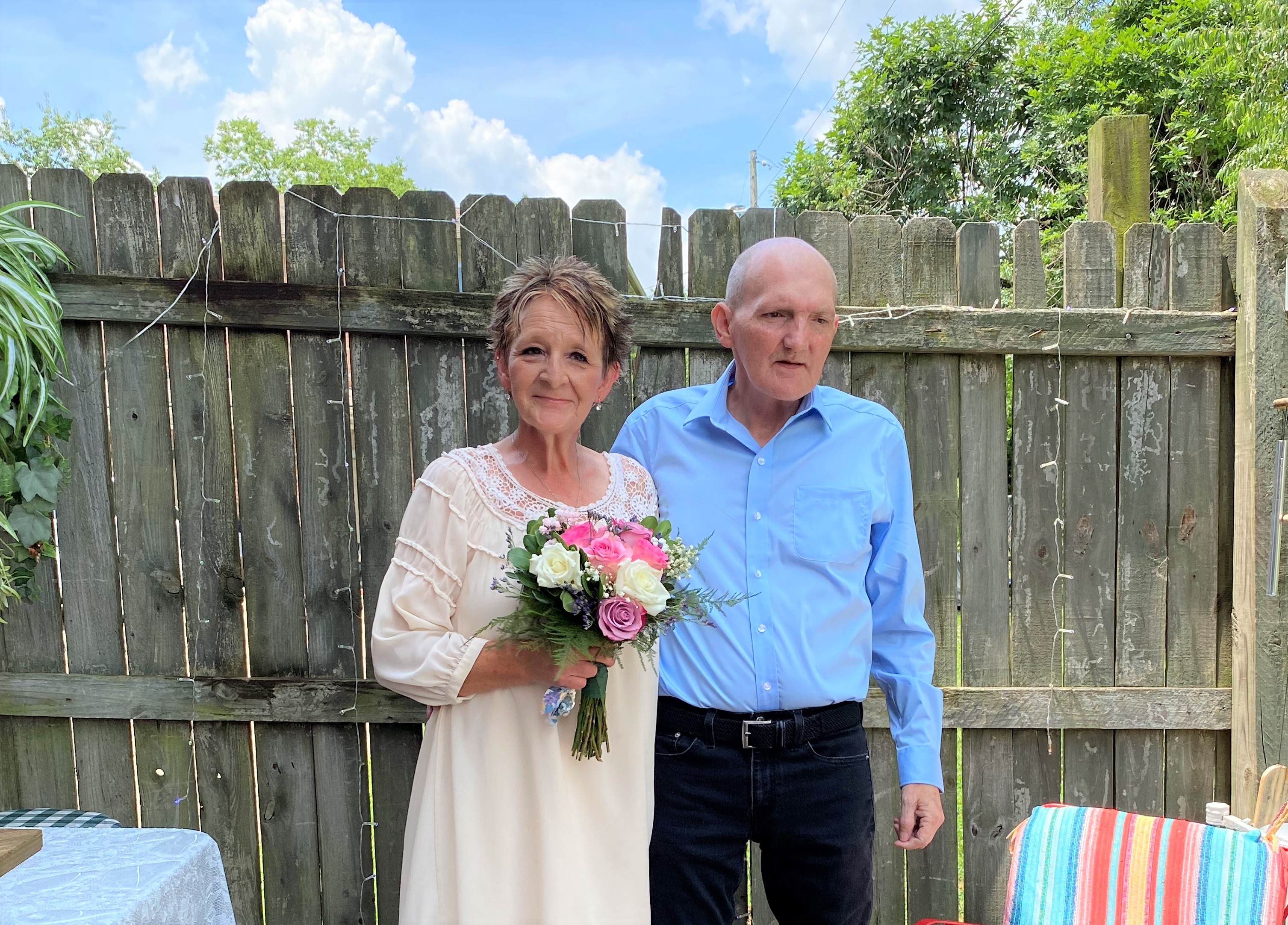 Foley’s Florist in Berea provided a beautiful bouquet at a steep discount, only charging enough to cover their cost. A staff member volunteered to take pictures. Another offered to make a cake. Courtney Saylor, his home hospice nurse, worked closely with Randy to ensure his symptoms were controlled and that he was rested, so he would have the strength to stand during the ceremony.